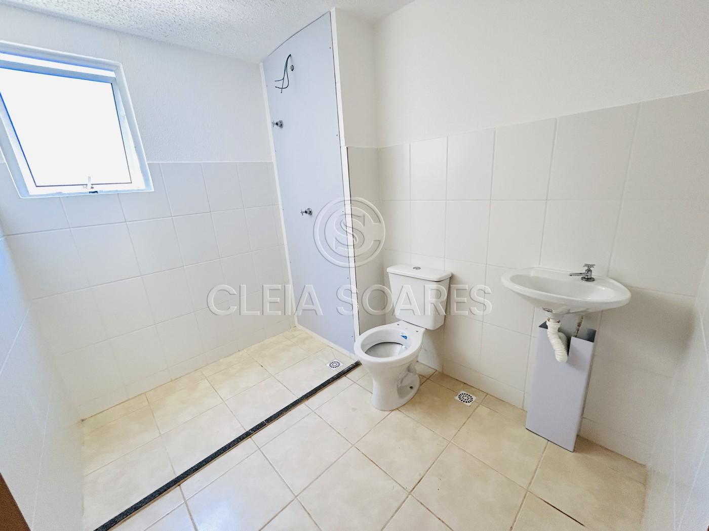 1 banheiro social com acabamento moderno;