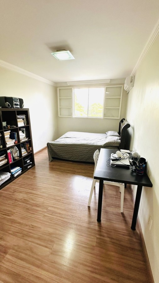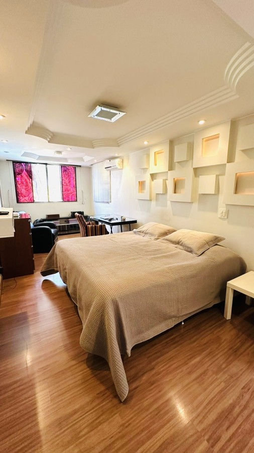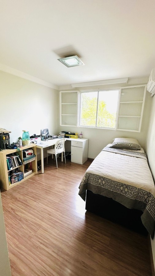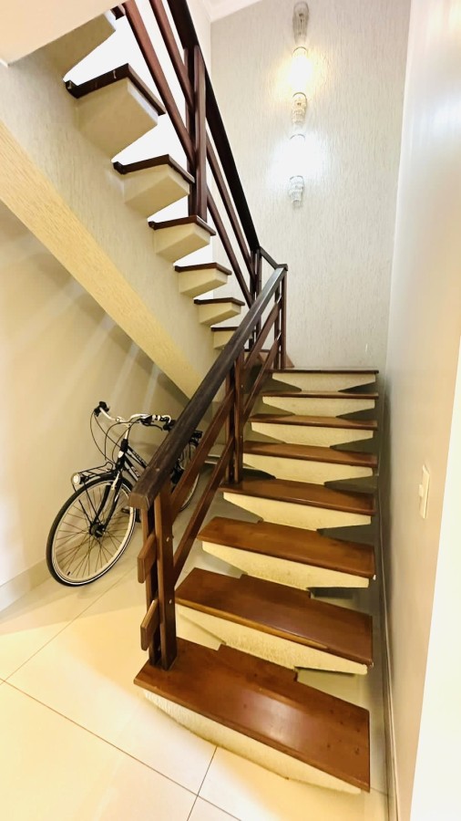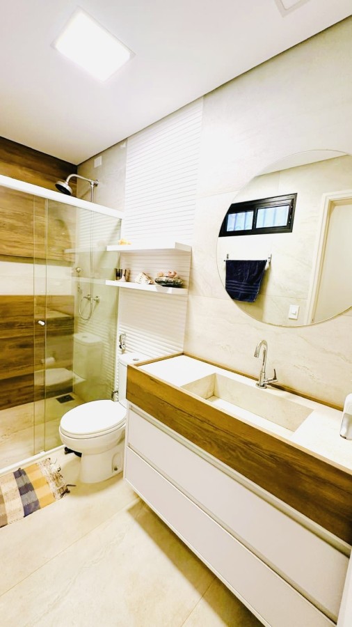 A suíte master é um destaque à parte: equipada com closet planejado, banheiro amplo com banheira e iluminação natural, criando um ambiente verdadeiramente acolhedor.